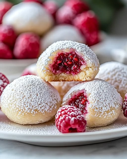 Almond Snowball Cookies with Raspberry Delight