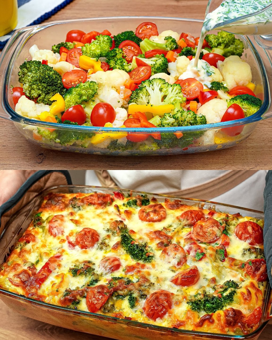This Broccoli and Cauliflower Bake with Cheese and Vegetables is a delicious and nutritious dish perfect for any meal. It’s packed with a variety of vegetables, eggs, and cheese, and it’s topped with a flavorful sauce that brings everything together.