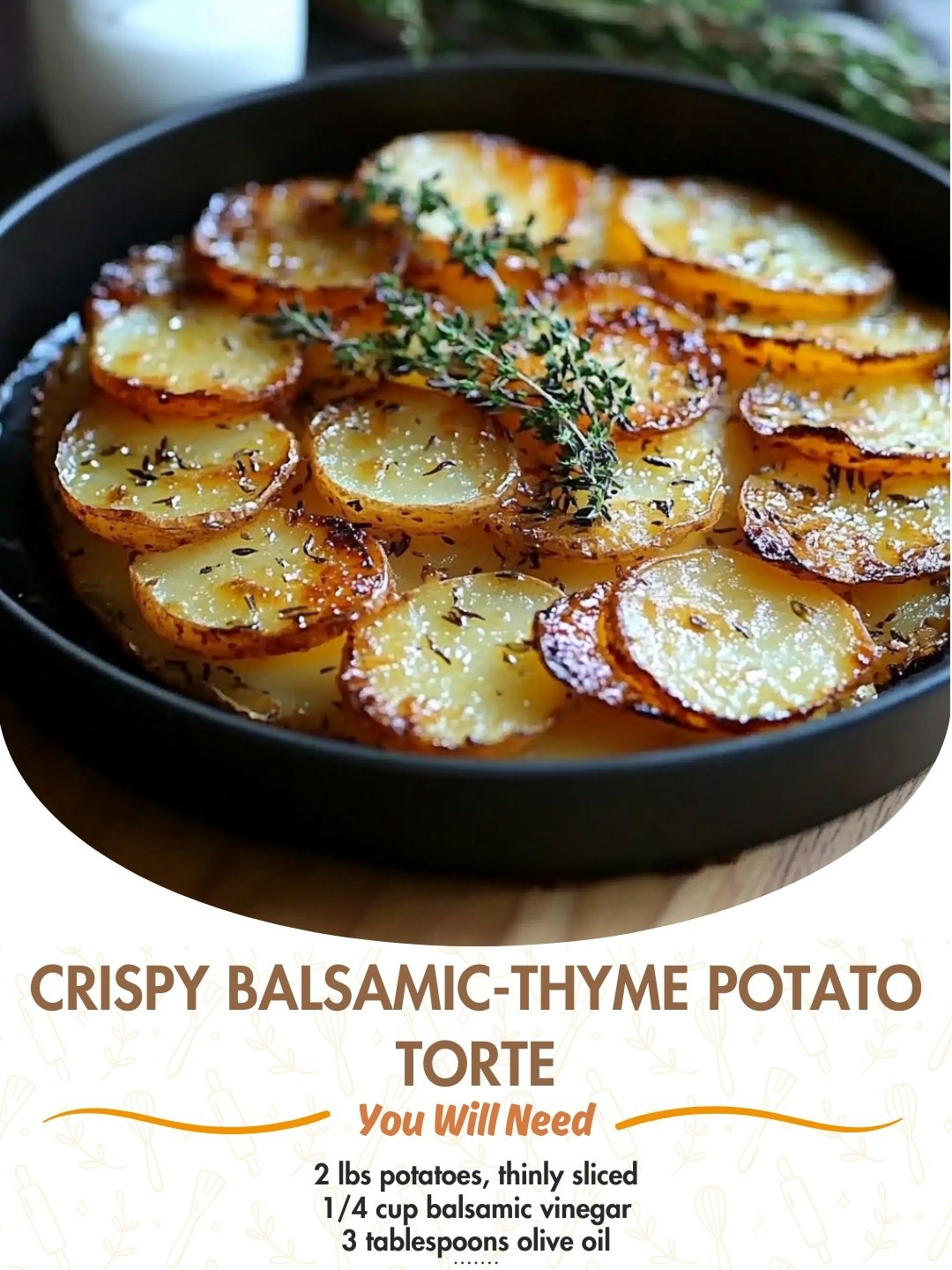 “Layers of thinly sliced potatoes, caramelized with balsamic vinegar and infused with fresh thyme, baked to crispy, golden perfection.”