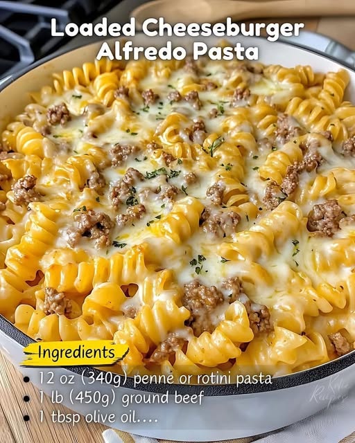 This creamy, cheesy, and indulgent pasta dish combines the flavors of a juicy cheeseburger with the richness of Alfredo sauce. It’s a fun twist on comfort food that’s sure to be a family favorite!