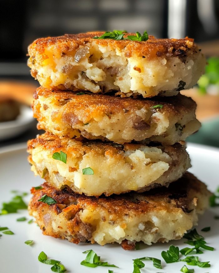 Mashed Potato & Stuffing Patties are a delightful and resourceful way to reinvent your holiday leftovers or to simply enjoy the classic flavors of comfort food. Originating from the desire to transform Thanksgiving staples into a new dish, these patties combine creamy mashed potatoes with savory stuffing, offering a crunchy exterior and a soft, flavorful interior. They’re perfect for brunch, a light lunch, or even as an appetizer for dinner parties. These patties not only help minimize food waste but also bring a sense of nostalgia and warmth to the table.