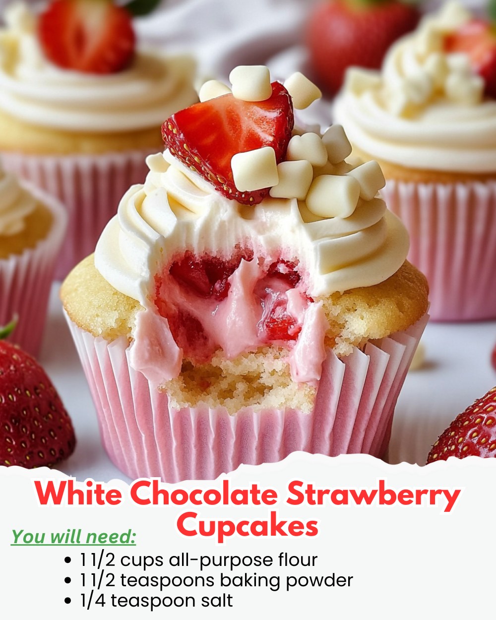 White Chocolate Strawberry Cupcakes