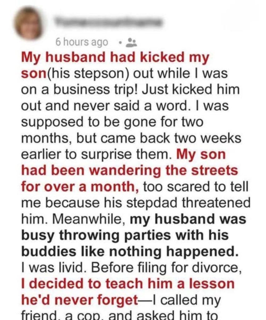 That illusion fractured the day I came home early — bags still in hand, exhaustion clinging to my bones after the long flight. The house was loud, chaotic, and full of people I didn’t understand. But worse than the chaos, worse than the music pounding through the walls, was the silence from my son’s room.