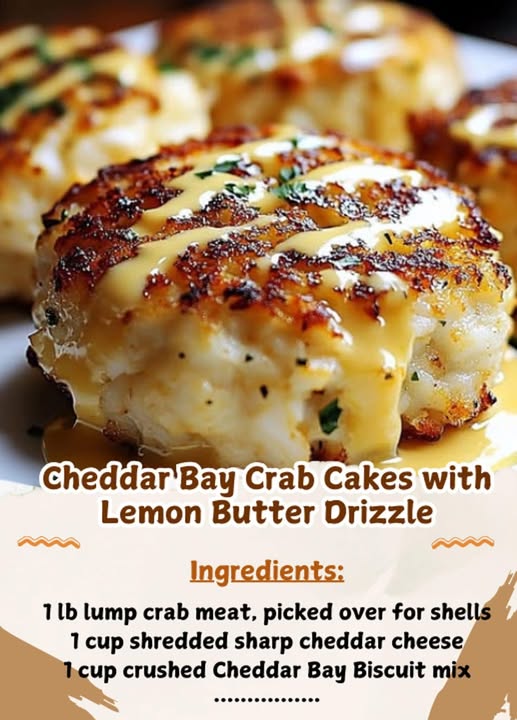 Cheddar Bay Crab Cakes with Lemon Butter Drizzle