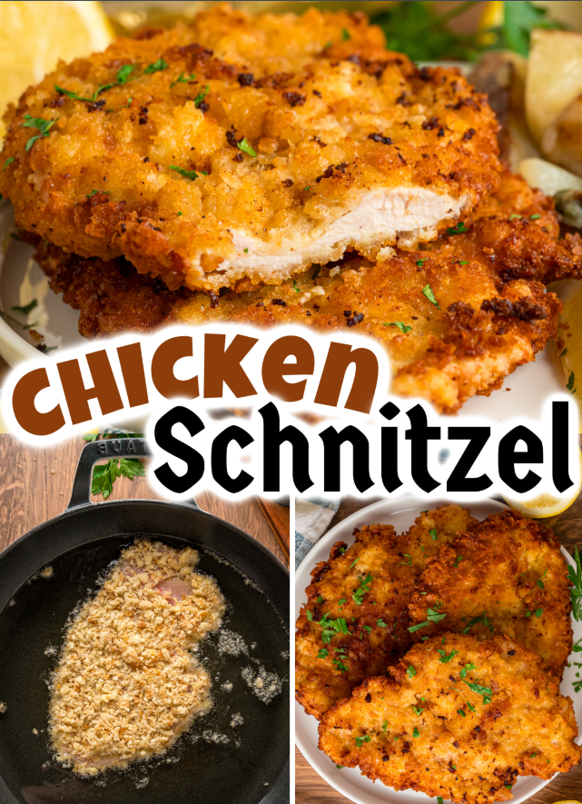 Made with basic ingredients. If you have chicken breasts on hand, you like have everything you need to make this chicken schnitzel. It’s perfect for whipping up when you’re not sure what to make.
