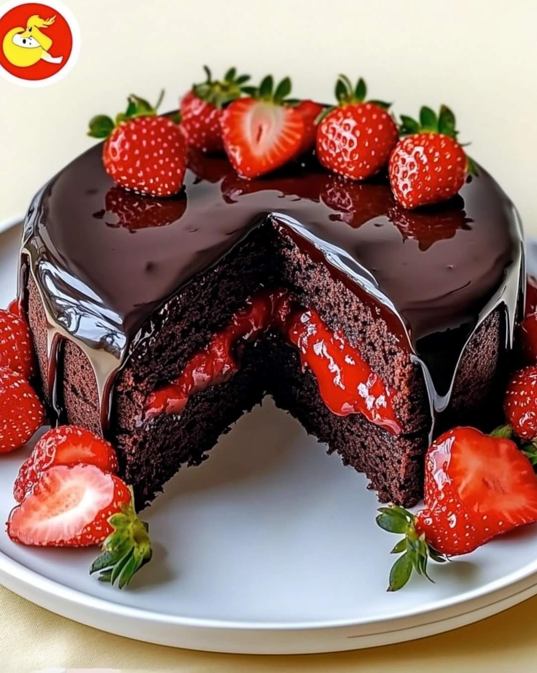 A decadent chocolate cake layered with tangy strawberry filling and finished with creamy chocolate frosting! This beauty is a must-make for any celebration or treat-yourself moment!