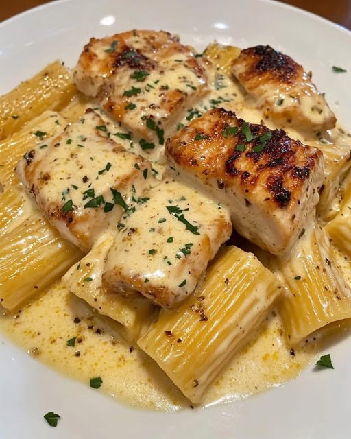 Creamy Garlic Butter Chicken and Rigatoni in Parmesan Sauce