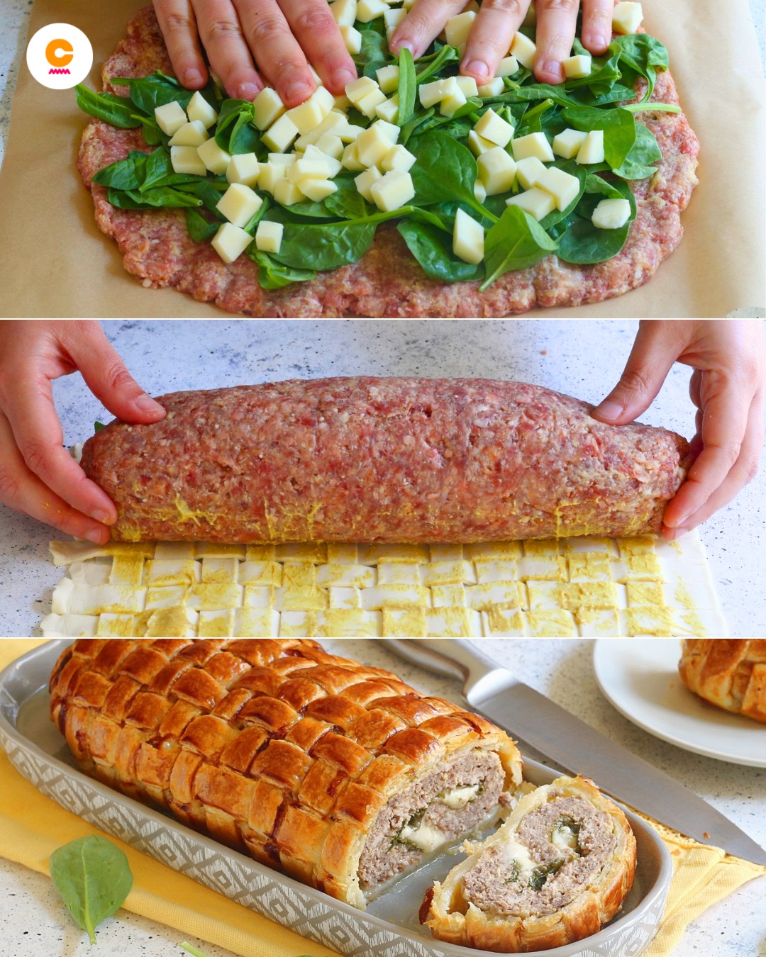 Easy Recipe for Crusty Stuffed Meatloaf Wellington Roll