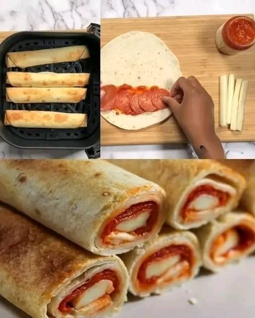 Lay a tortilla flat and spread about 1 tablespoon of pizza sauce near one end.