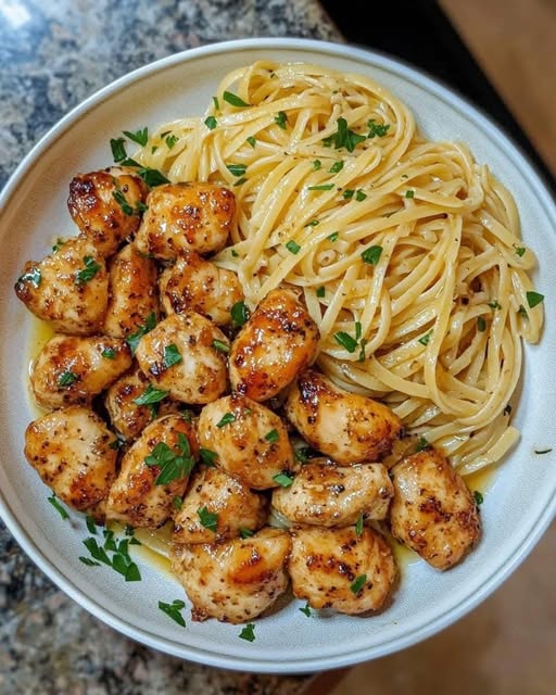 Garlic Butter Chicken Bites with Creamy Parmesan Pasta