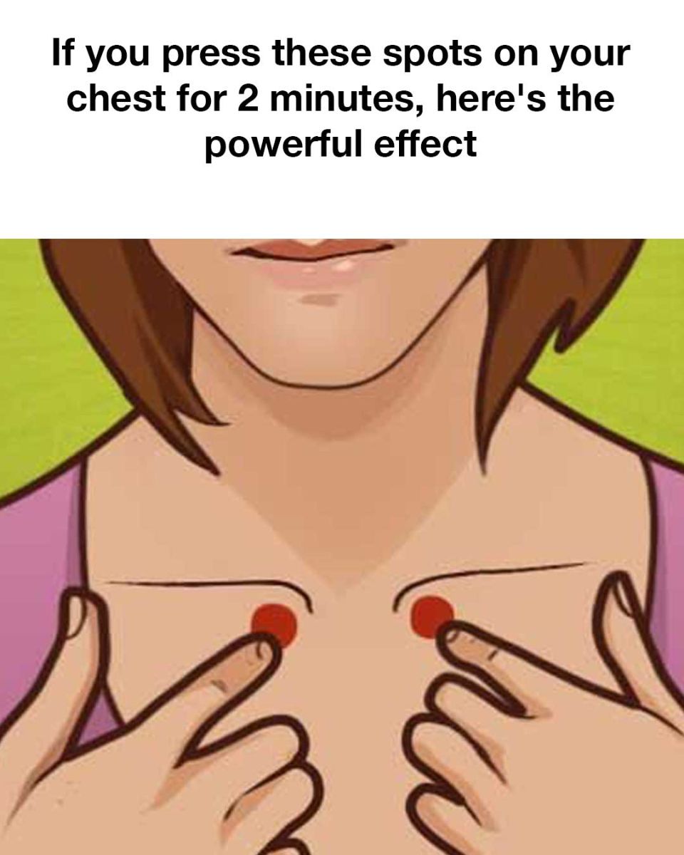 According to traditional Chinese medicine and modern reflexology, there are specific points on the chest, particularly below the collarbone, that can have significant health benefits when pressed or massaged. In this article, we’ll explore these spots and how pressing them for just two minutes can lead to powerful effects.