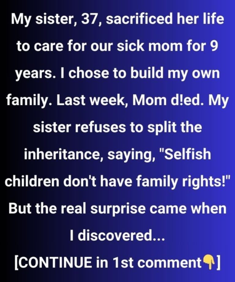 Family disputes over inheritance are often a major source of tension, especially when relatives feel entitled to a larger share. When Wendy’s mother pa:ss:ed away, her sister Cynthia argued that Wendy didn’t deserve an equal portion, claiming she hadn’t shown enough commitment to their mother.