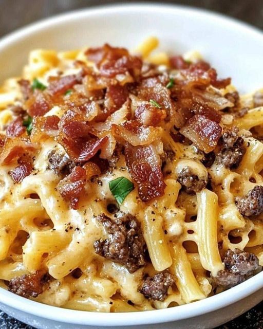 This Loaded Bacon Cheeseburger Pasta brings all the flavors of a classic cheeseburger into a comforting, cheesy pasta dish. It’s packed with savory ground beef, crispy bacon, and a creamy cheese sauce that’s sure to satisfy your cravings. Perfect for a quick weeknight meal or a family favorite dinner!