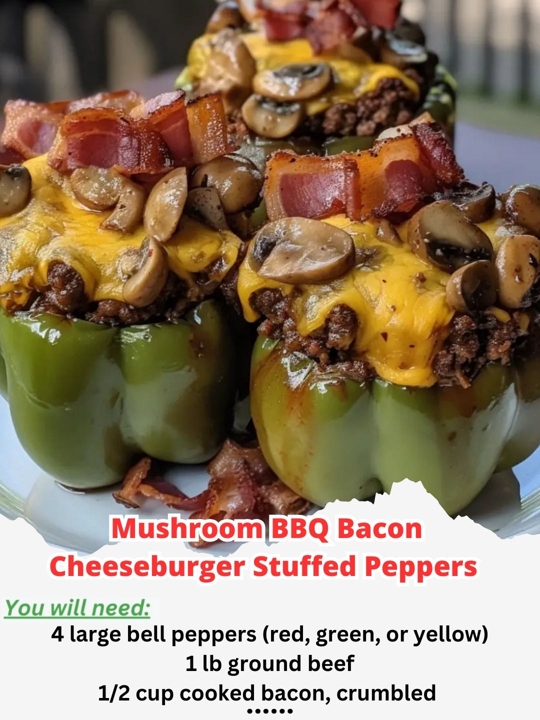 Mushroom BBQ Bacon Cheeseburger Stuffed Peppers