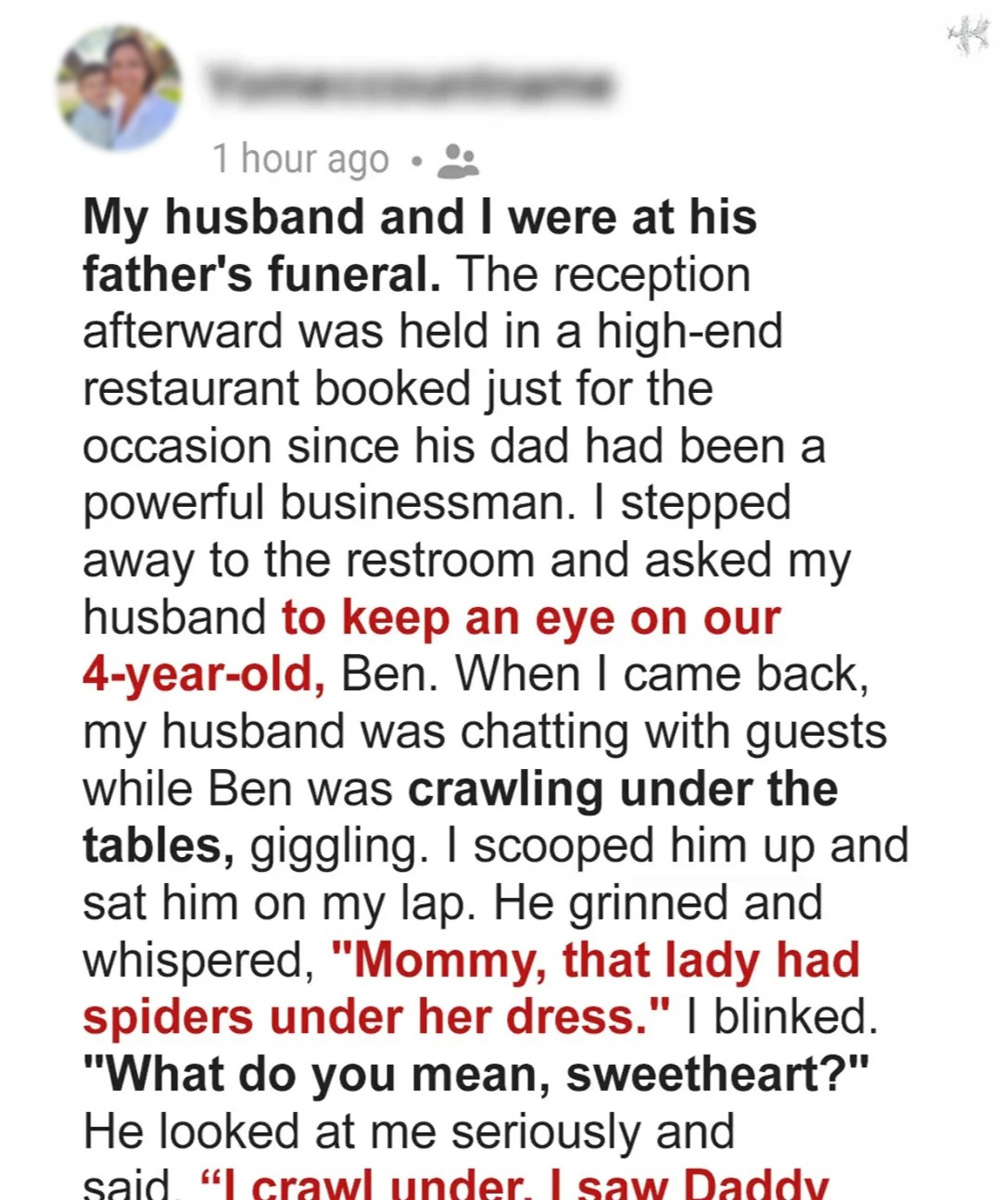 At my father-in-law’s funeral, my four-year-old son, Ben, made an innocent comment that exposed a truth I never saw coming.