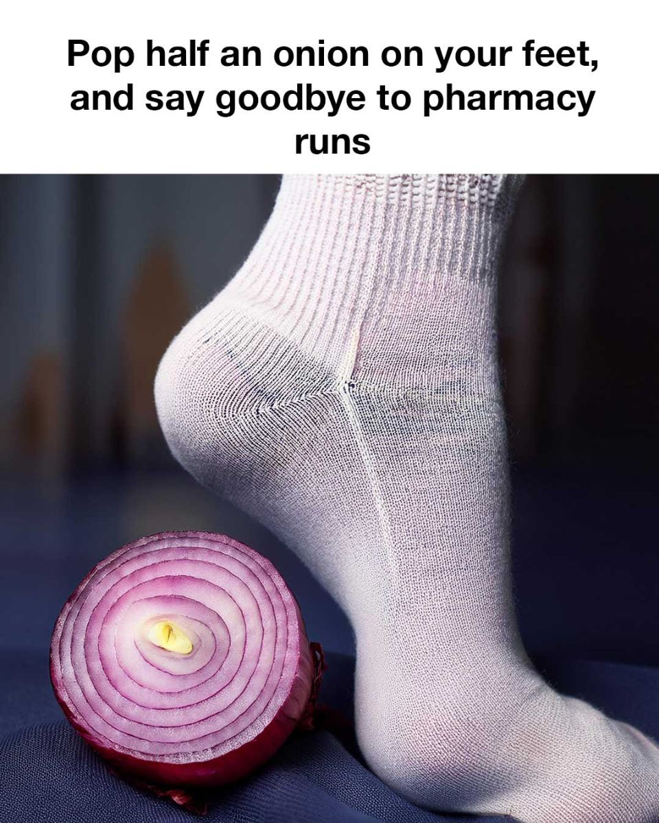 Pop half an onion on your feet, and say goodbye to pharmacy runs!