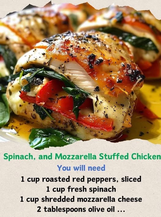 Roasted Red Pepper, Spinach, and Mozzarella Stuffed Chicken