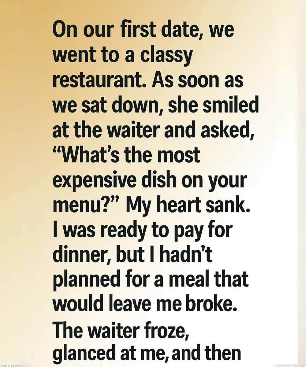 The restaurant had a quiet elegance – the kind of place where the lighting glowed warmly and every detail seemed deliberate. My stomach was tight with nerves, but my heart carried a spark of hope. Then she glanced at the waiter, smiled, and asked, “What’s the priciest item on your menu?” I froze.