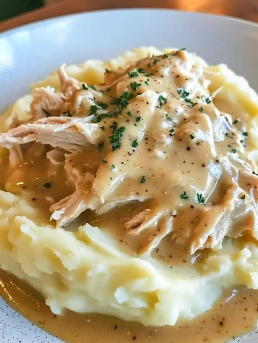 Shredded Chicken Gravy on Mashed Potatoes Recipe