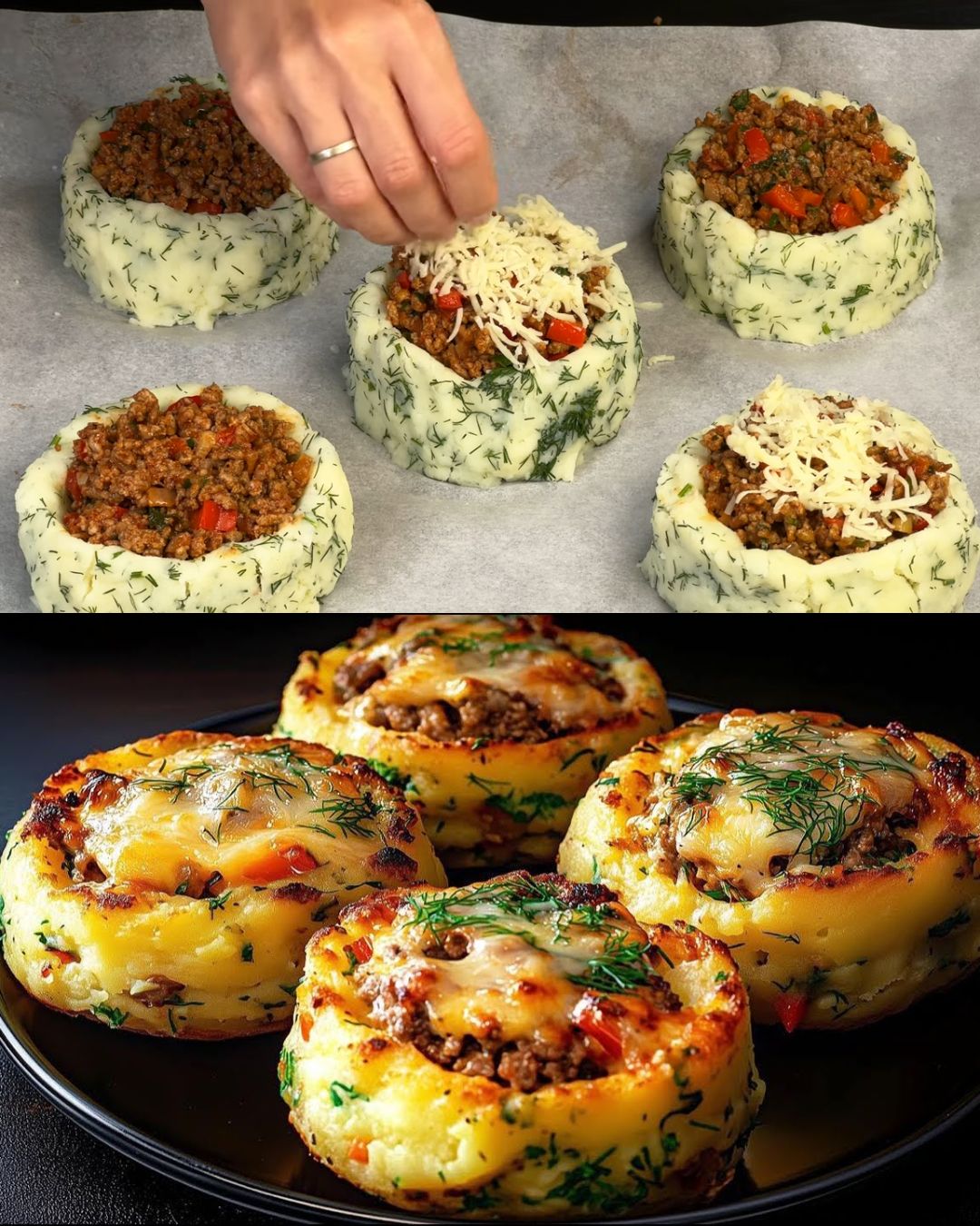 These Stuffed Mashed Potato Nests are a creative and delicious twist on traditional mashed potatoes. Crispy potato nests are filled with a savory ground beef mixture, topped with melted mozzarella cheese, and garnished with fresh herbs for a dish that’s as visually stunning as it is flavorful. Perfect for brunch, dinner, or entertaining guests, this recipe is simple yet impressive!