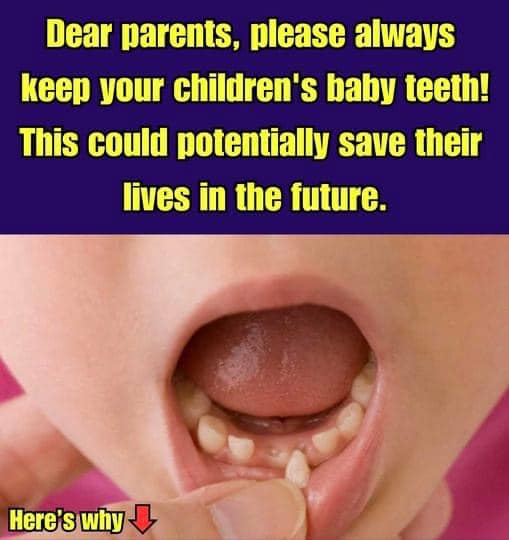 Dear parents, please always keep your children’s baby teeth! This could potentially save their lives in the future.