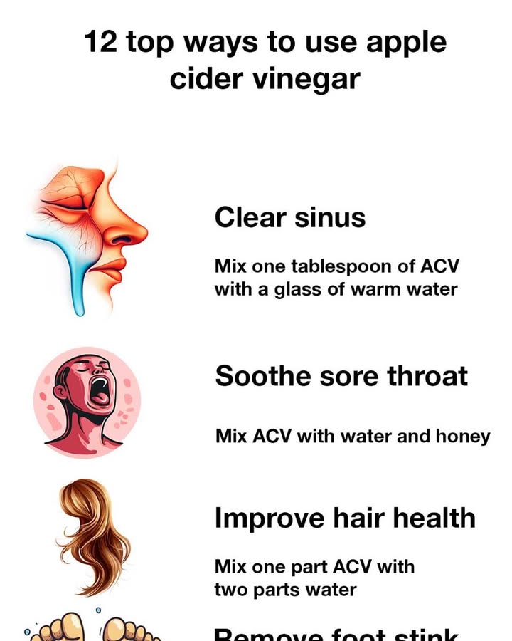 Apple cider vinegar can help clear sinuses due to its ability to break up mucus and its antibacterial properties. To use it for sinus relief, mix one tablespoon of ACV with a glass of warm water and drink it. This can help thin the mucus, making it easier to expel, and reduce sinus congestion. Some people also inhale steam from hot water mixed with ACV to help clear their nasal passages.