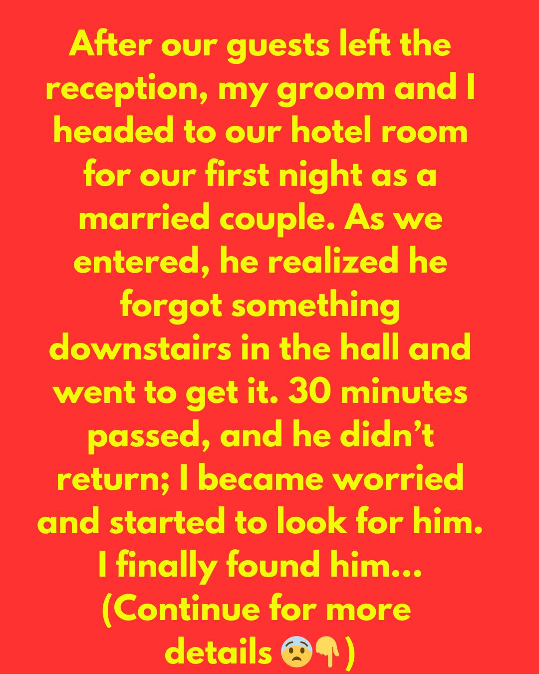 After our guests left the reception, my groom and I headed to our hotel room for our first night as a married couple. As we entered, he realized he forgot something downstairs in the hall and went to get it.